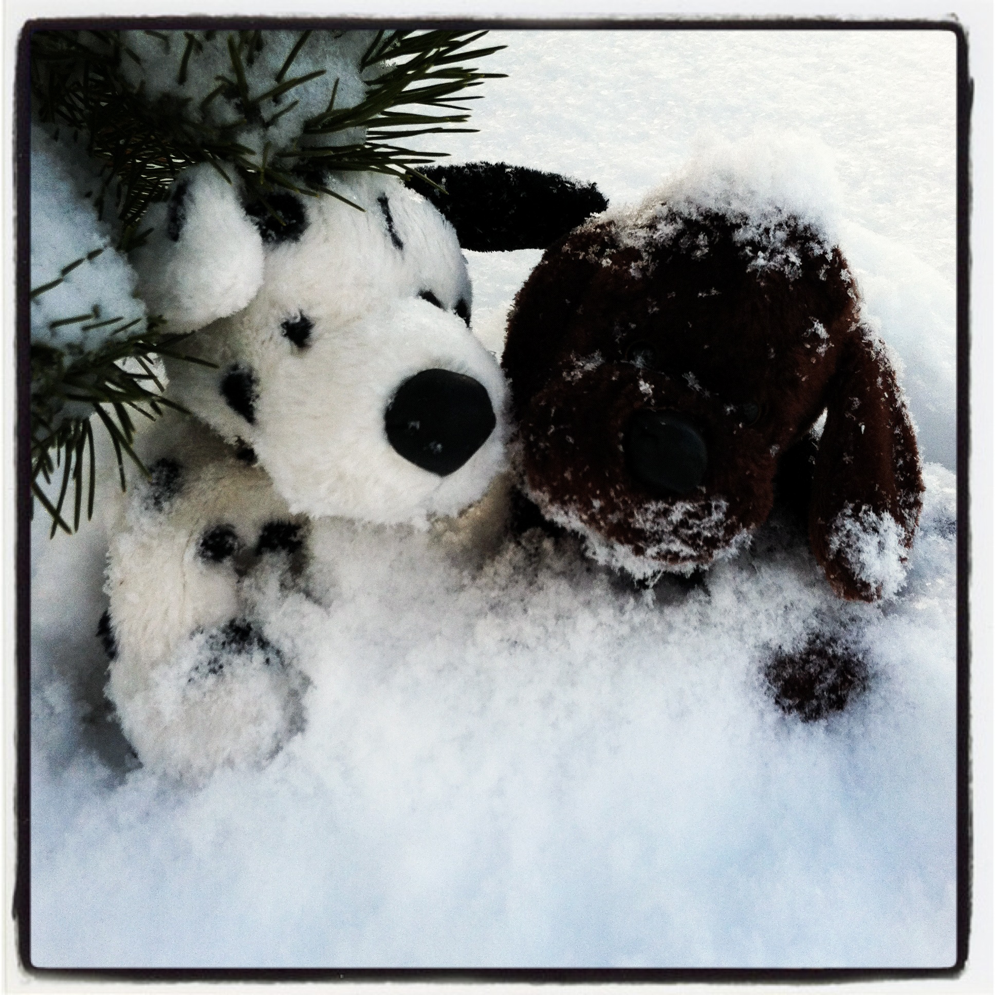 Following her to a tiny, ice-covered tree, I found two adorable, frightened little friends huddled together to stay warm.