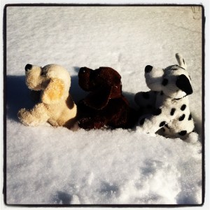 Reunited as if they were long-lost littermates, the three immediately began to bound around the yard…jumping, flipping, flying through the air, and playing Duck, Duck, Goose (which is harder than you’d think on four feet and a sizable amount of snow).
